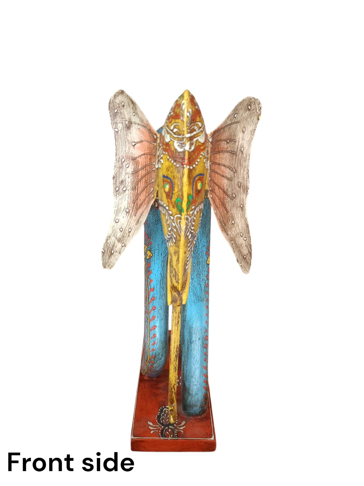 • This beautiful elephant statue is very attractive due to its artistic design and bright colors. The traditional patterns on it make it even more beautiful. This piece symbolizes strength, good fortune, and the beauty of art.