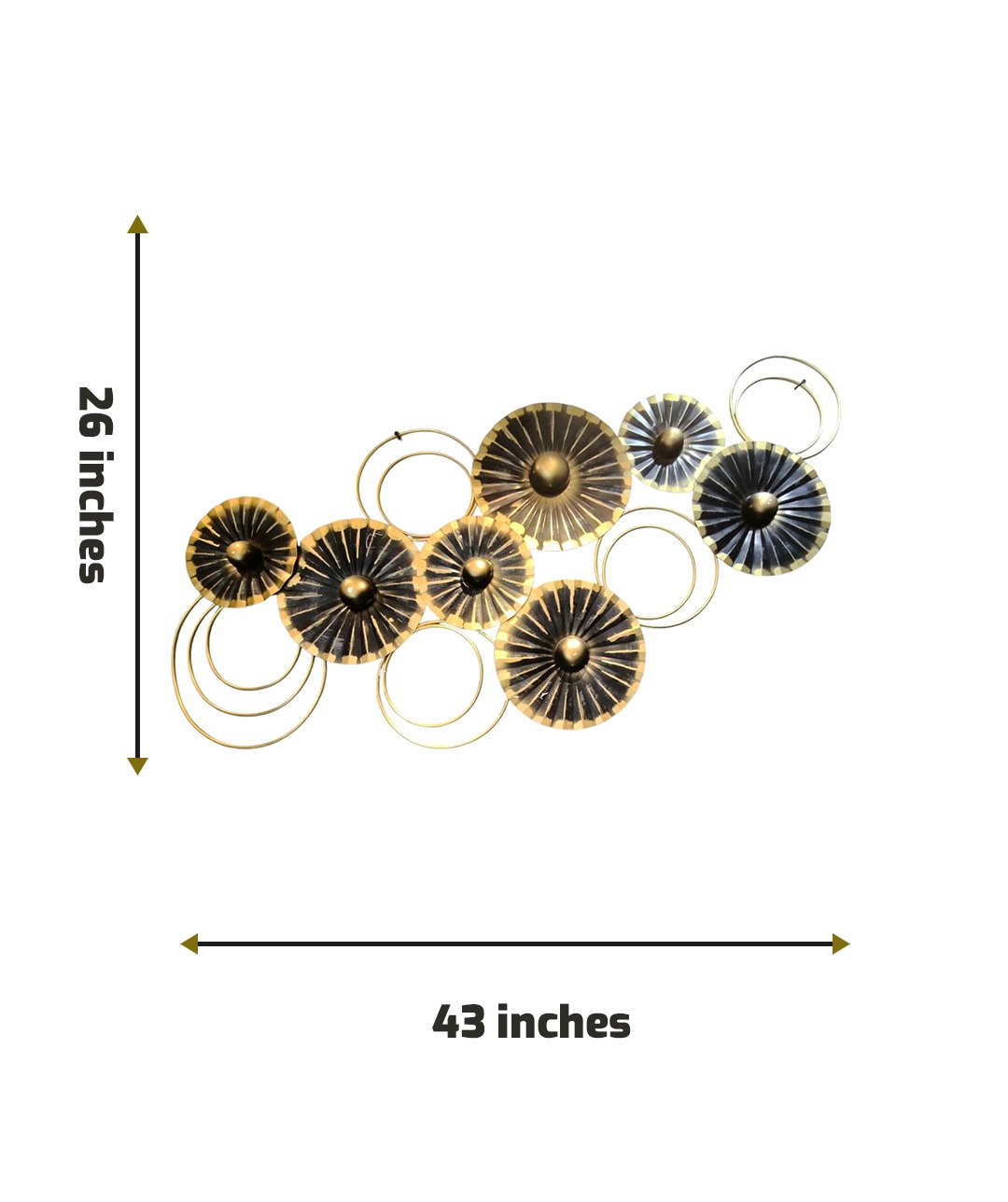 • Many round, black shapes with gold lines, all mixed with swirly gold wires. It’s a shiny and cool design.