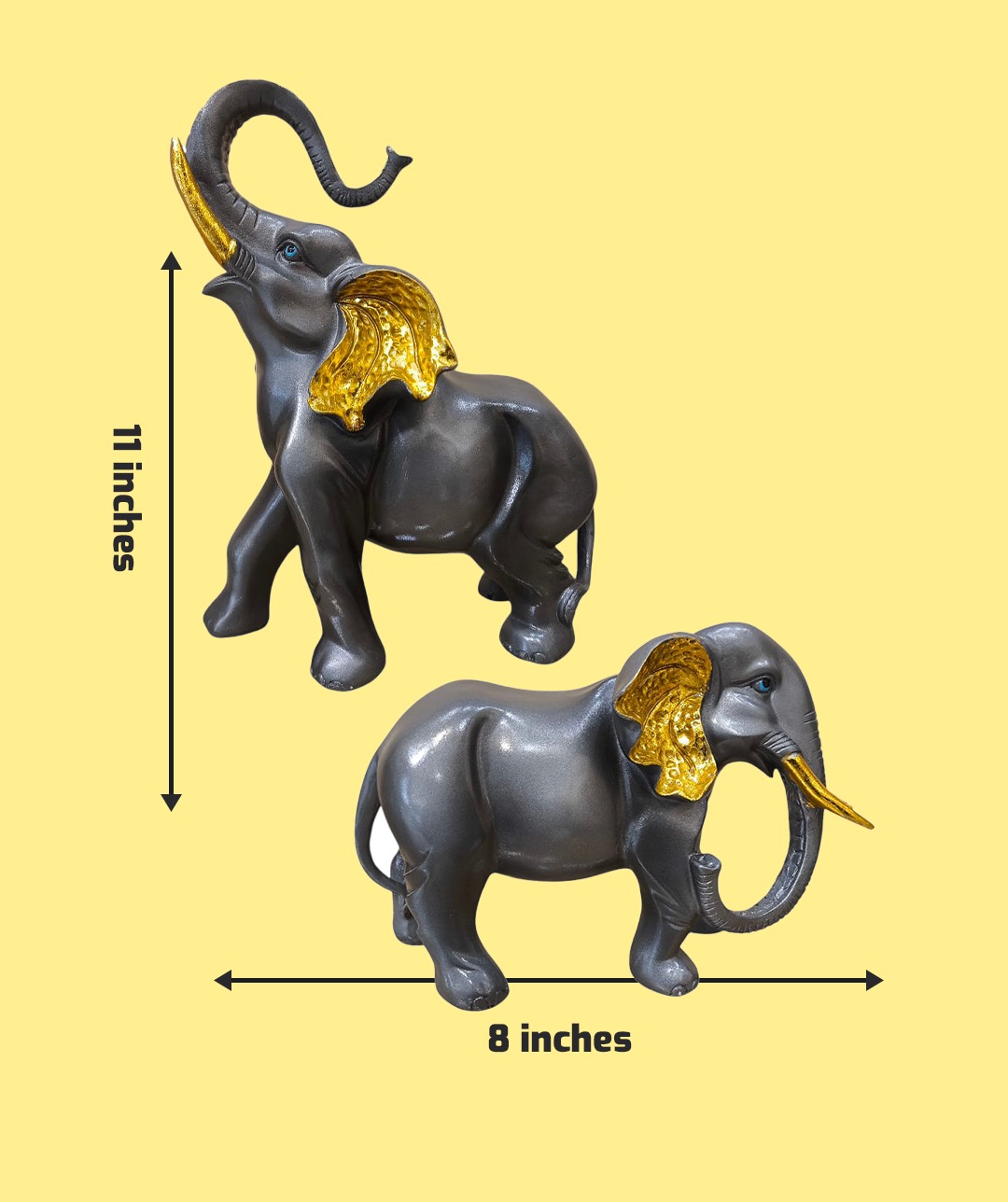 Bring strength, prosperity, and elegance into your home with this stunning Black & Gold Elephant Showpiece Set. Expertly crafted from high-quality resin, these two graceful elephant figurines feature a sleek matte black finish with intricately detailed golden ears and tusks, adding a luxurious touch to any décor style.