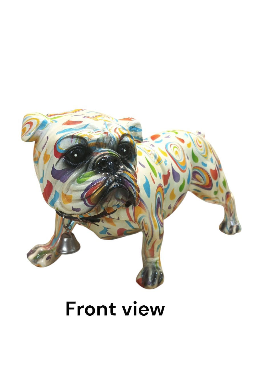 - Hand-painted decorative bulldog statue featuring rainbow shades, ideal for modern and eclectic home decor.