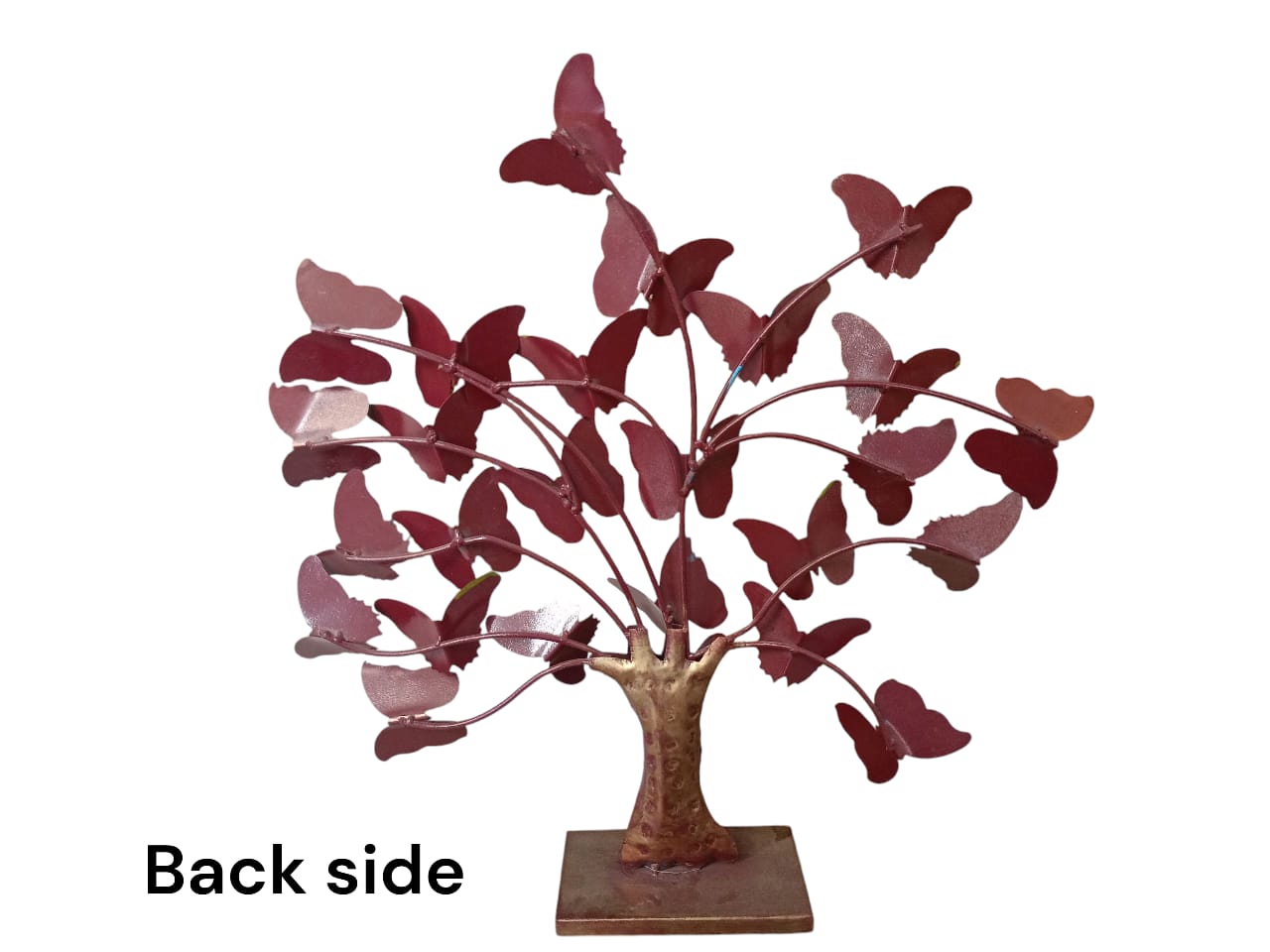 - This charming sculpture, “Butterfly Bloom,” features a tree-like form adorned with numerous colorful metallic butterflies in shades of blue, green, and red. It beautifully symbolizes transformation, growth, and the delicate beauty of nature, bringing a vibrant and serene touch to any setting.