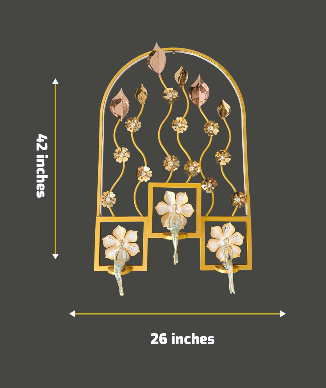 Bring elegance and charm to your interiors with this Floral Metal Wall Art. Measuring 42 inches in height and 26 inches in width, this stunning piece features delicately crafted metal flowers, leaves, and artistic curves in a golden finish. The intricate detailing and three-dimensional floral design make it a perfect centerpiece for your living room, hallway, or bedroom wall décor.