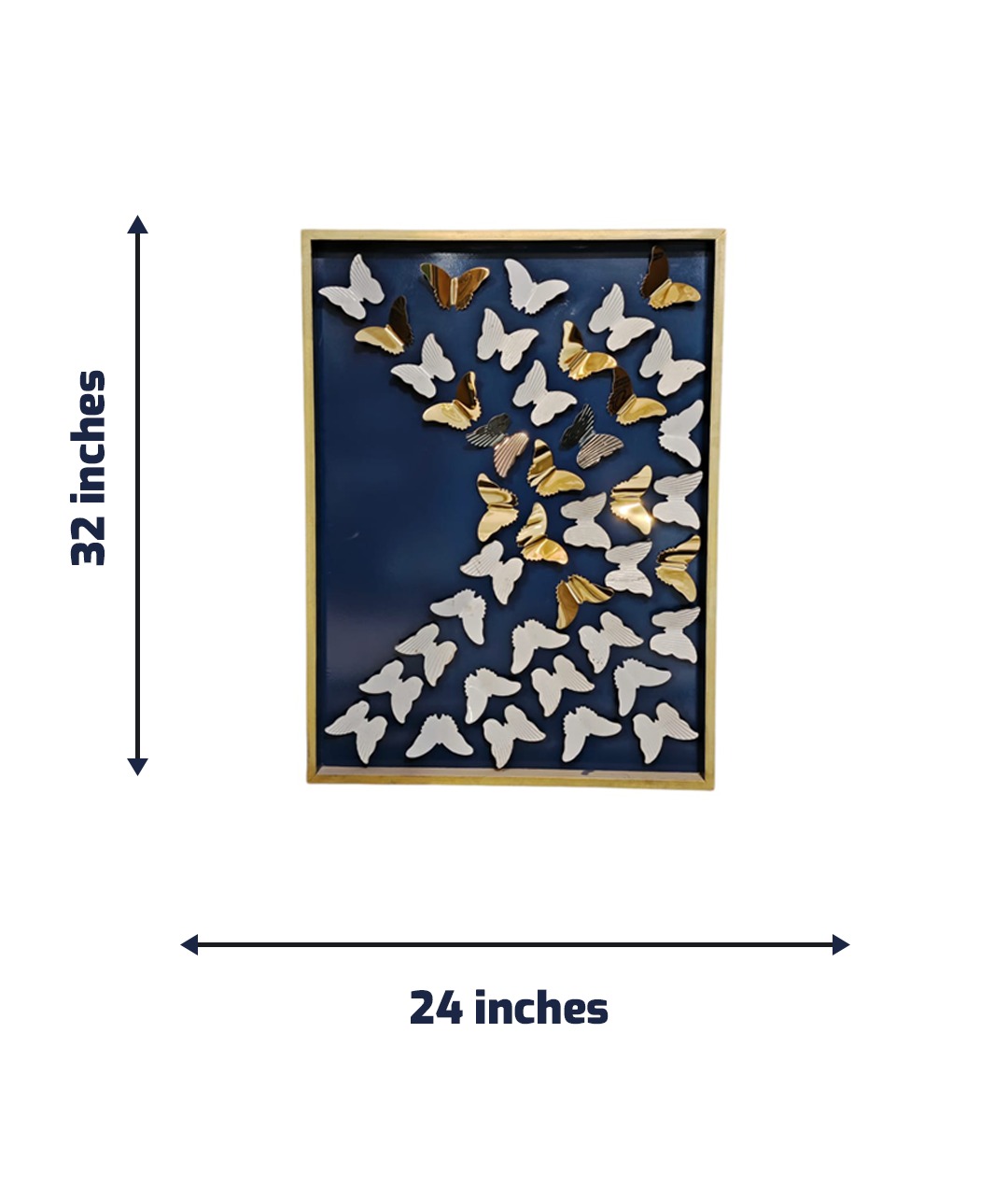 Dramatic Contrast: Features a deep navy blue backdrop that makes the white and gold butterflies stand out vibrantly.