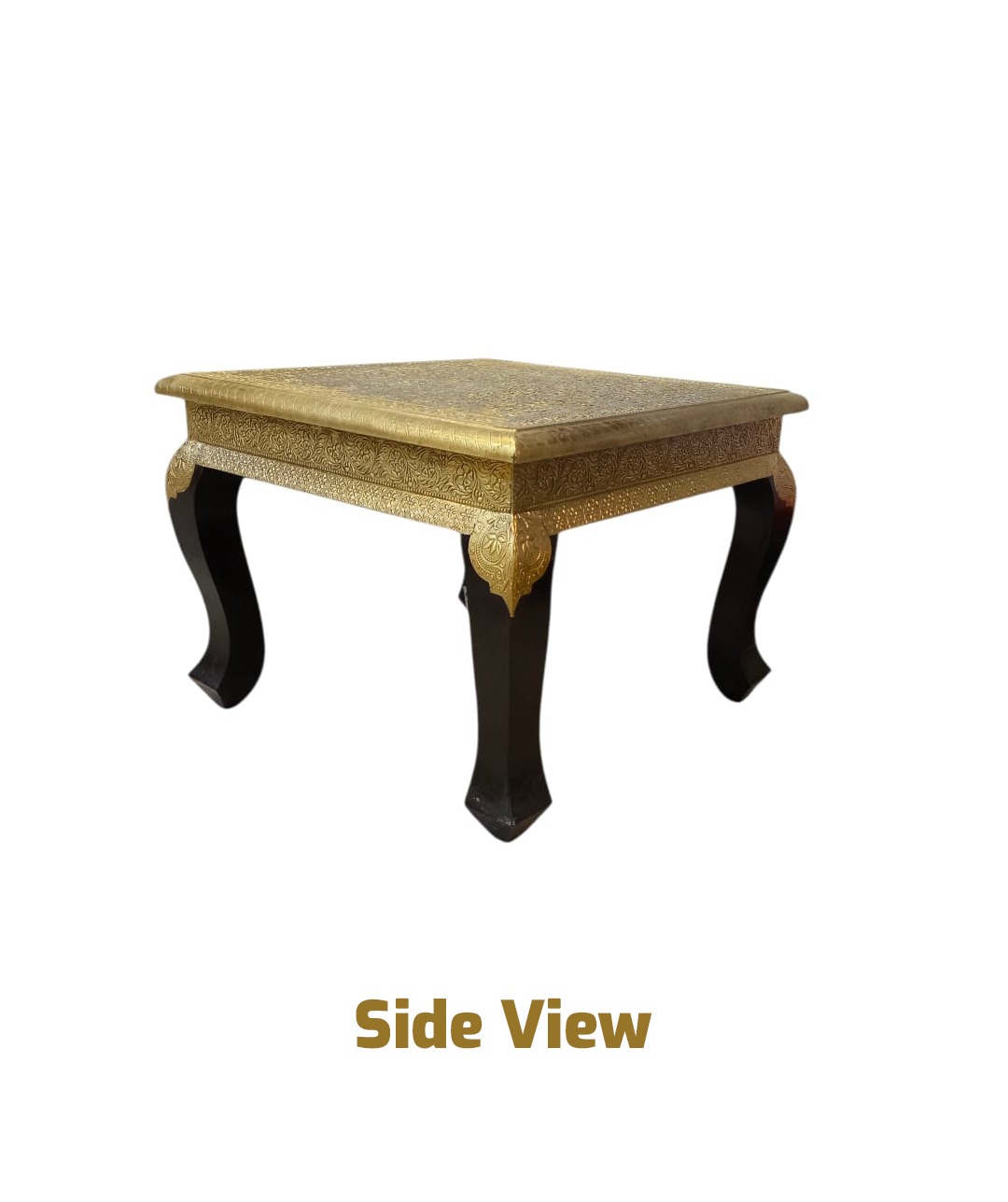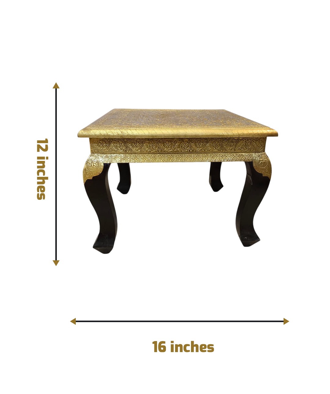 Elevate your living space with the Gold Accent Table, a perfect blend of traditional artistry and modern elegance. Handcrafted with intricate gold detailing and supported by gracefully curved black legs, this table adds a luxurious touch to any room. Whether used as a centerpiece in your living room or a side table in your reading nook, its timeless design effortlessly complements any décor style.