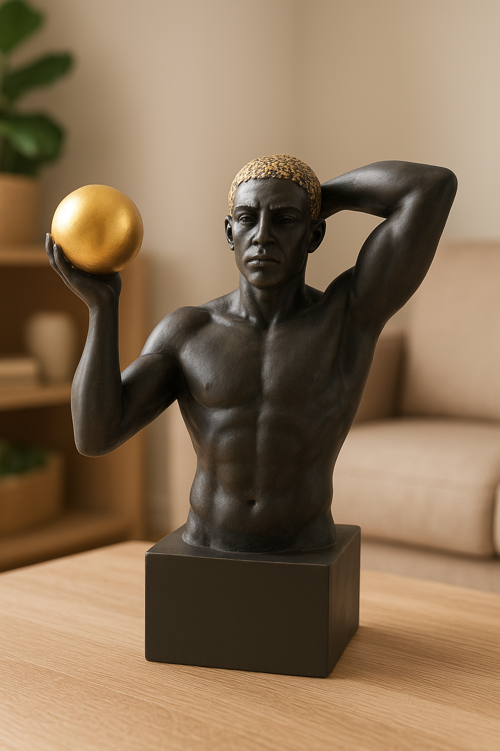 The Golden Ball Gladiator is a bold and artistic home decor piece that blends elegance with strength. Crafted with fine detailing and a striking golden ball, it represents confidence, resilience, and timeless beauty. Because of its unique design, the Golden Ball Gladiator is perfect for enhancing both home and office interiors.