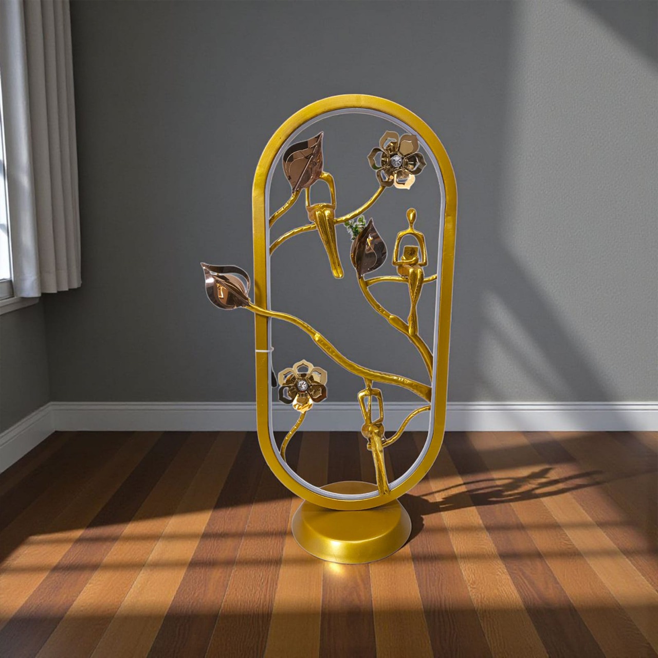 Perfectly balanced on a sturdy golden base, this statement art piece exudes sophistication and charm — ideal for living rooms, hallways, offices, or entryways. Its glossy metallic finish enhances both contemporary and traditional interiors, making it a timeless decorative addition.
