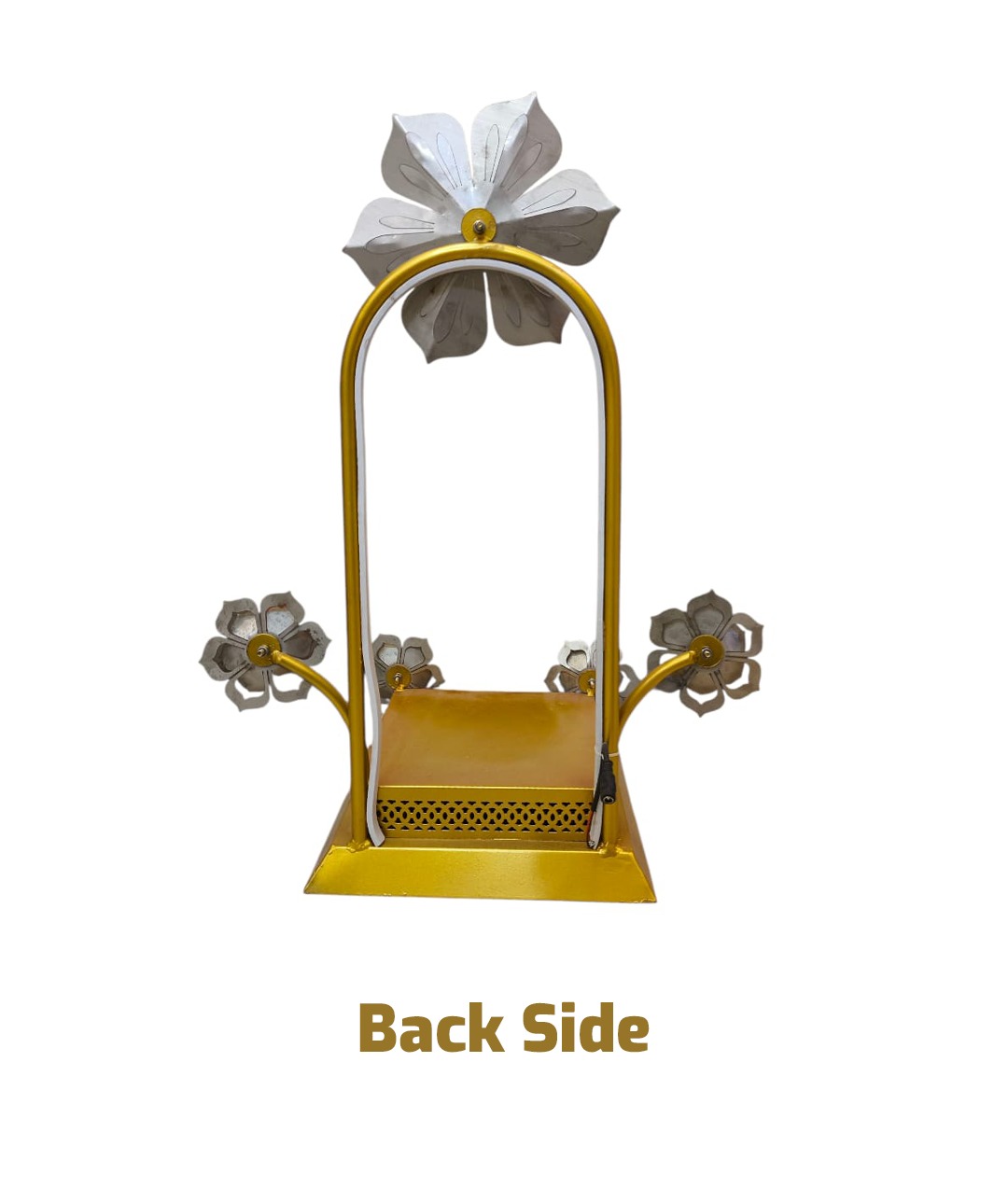 Bring timeless charm and elegance into your home with the Golden Blossom Stand, a beautifully crafted decorative piece designed to add a royal touch to any space. Featuring intricately designed metal flowers with crystal accents, this stand perfectly blends traditional artistry with modern aesthetics. Standing 24 inches tall and 17 inches wide, it serves as a striking centerpiece for your living room, entryway, or worship space.