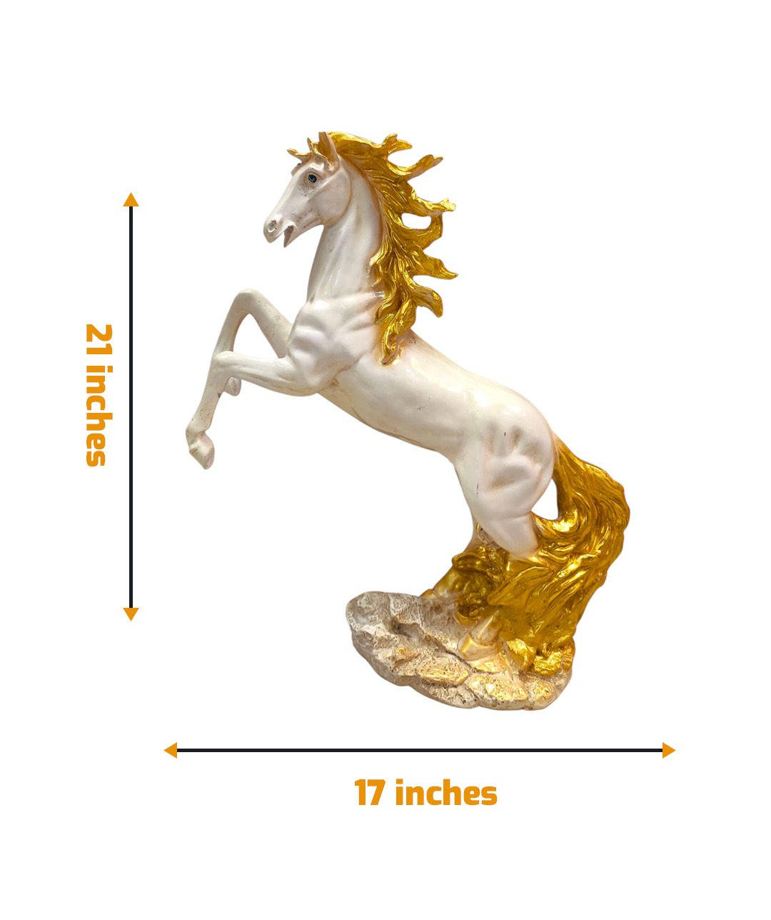 Add a touch of power and elegance to your décor with the Golden Grace Horse Statue, a stunning symbol of strength, freedom, and victory. Expertly crafted with exquisite detailing, this rearing horse figurine features a sleek white finish complemented by radiant golden accents on its mane and tail. Perfect for living rooms, offices, or entryways, it serves as a striking centerpiece that brings both sophistication and inspiration to any space.