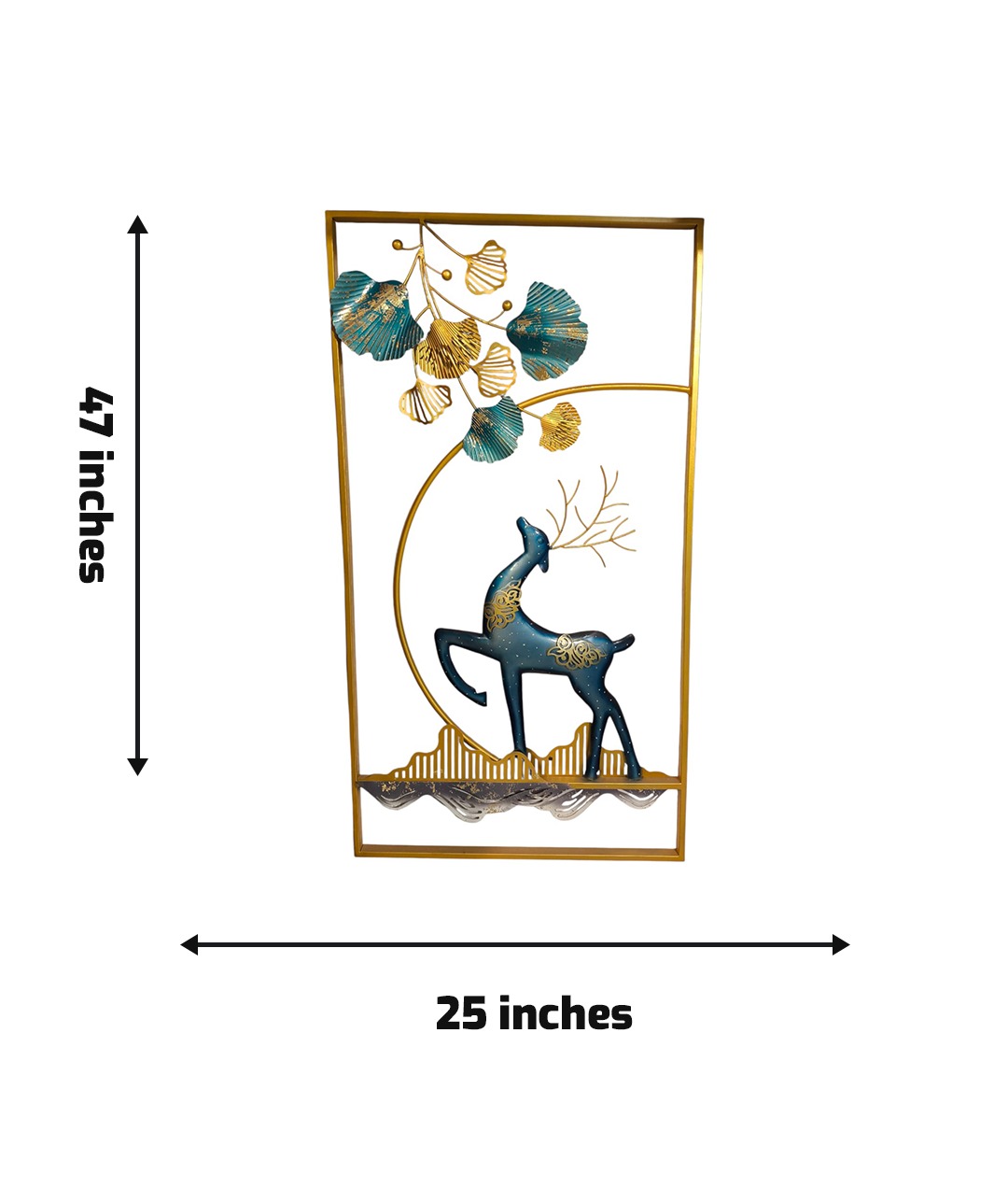 This majestic frame piece brings a sense of nobility and natural elegance to your home decor. It features a graceful deer in deep teal and gold, standing beneath an arch of shimmering ginkgo leaves. Housed within a minimalist gold frame, this artwork is a perfect vertical accent for living rooms, hallways, or luxury bedrooms.
