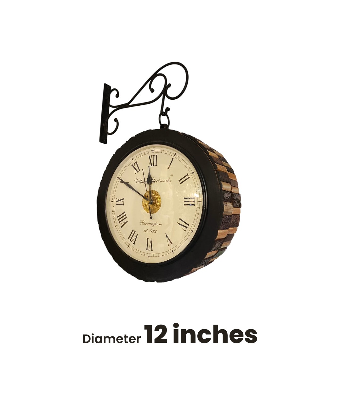 Give your interiors a timeless and elegant look with this beautifully crafted Retro Bracket Mounted Wall Clock. Designed with a rustic, textured side pattern and a strong wrought-iron hanging bracket, this clock adds an antique charm to any wall.