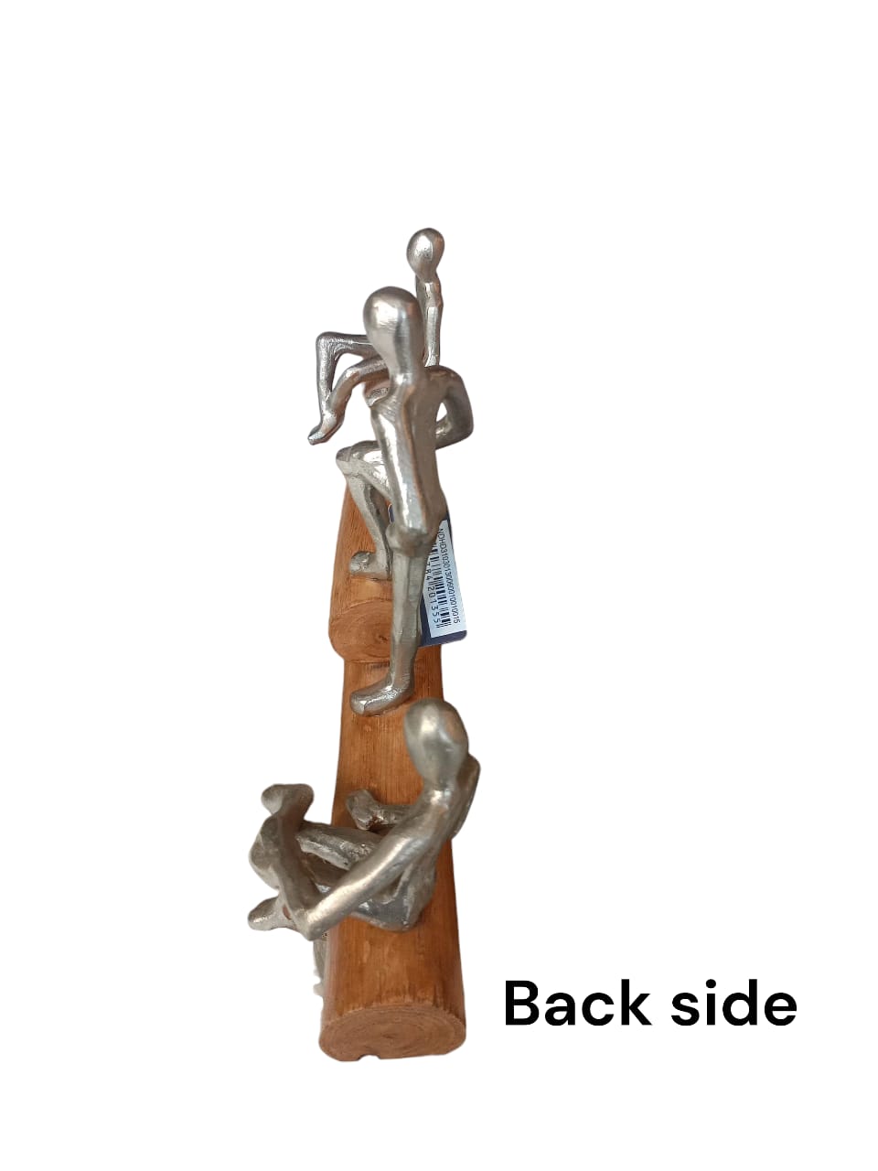 - “Wooden Unity” captures the essence of this sculpture, where three figures, despite their individual poses, are bound together by the single wooden beam. It highlights the central element of wood and its role in creating a visual representation of togetherness and support.